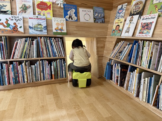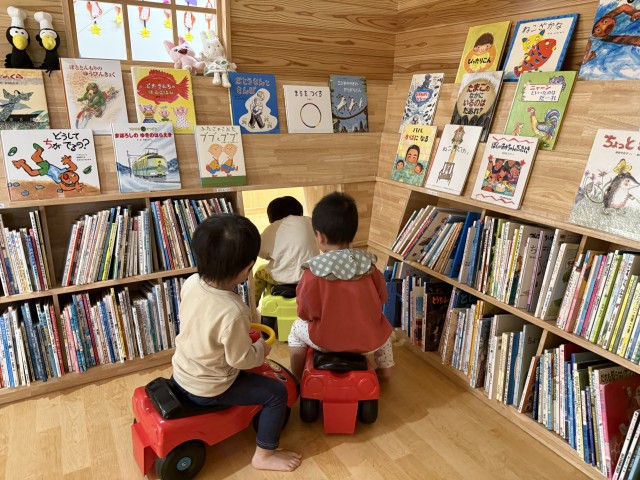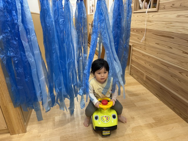 コンビカーを出すと大喜び!廊下を楽しそうにドライブしています。あ、絵本の森に小さなトンネルが!?上手に腰を低くしてトンネルをくぐっていく小さなドライバーさん達でした♪