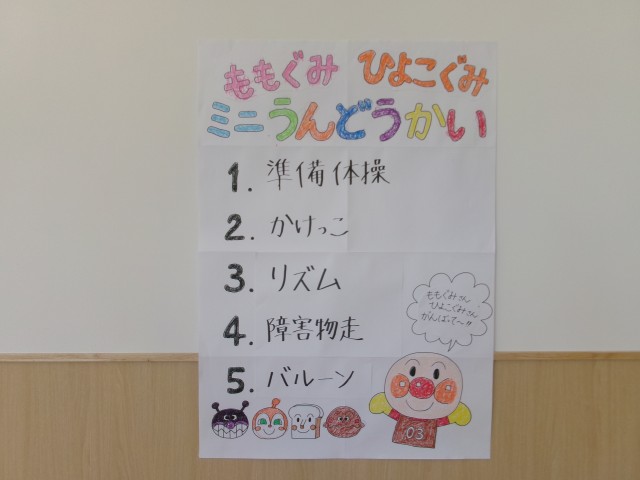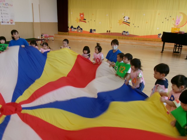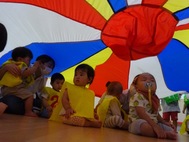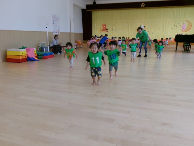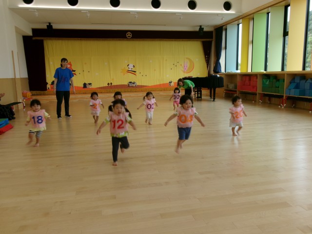 先日運動会が終わりましたが、お兄ちゃんやお姉ちゃん達の姿をみて小さなお友達もミニ運動会を開催していました。「よーい、どん!」とかけっこをしたり、障害走、バルーン、ポンポンをもってリズムを踊ったり、いろいろな種目を楽しんでいました♪
