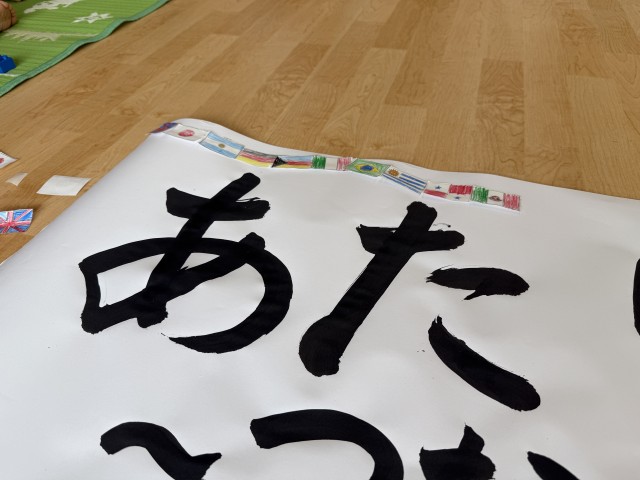運動会に向けて毎日頑張っている子ども達。青組さんはテーマを手作りして飾っていました。当日も運動会に登場する予定です♪ 運動会晴れますよーに!!
